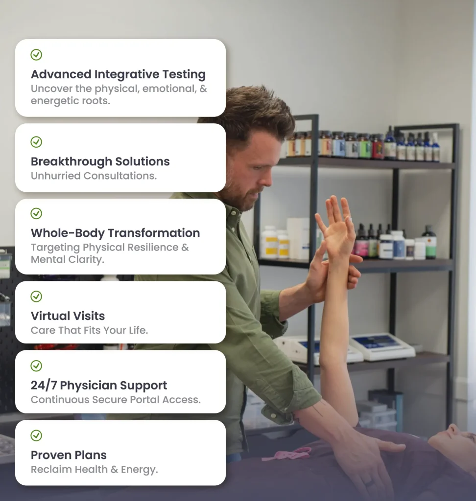 We’ll take time to truly understand what’s been happening in your body, your life, and your environment. Together, we’ll create a care plan that’s rooted in data, guided by insight, and aligned with your vision of real wellness, physical, emotional, and beyond.